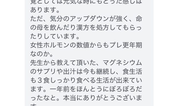 2025年12月11日お客様の声privatesalon_vinaka 【お客様のお声】前回の施術後1ヶ月よい状態だった!お客様のお声 前回から期間が空いてしまいましたが、久しぶりに施術していただき すっきりポカポカをまた感じることができて嬉しいです。 1ヶ月。施術後の状態を維持できたことが嬉しかったです! また、よろしくお願いします 便秘 […]
