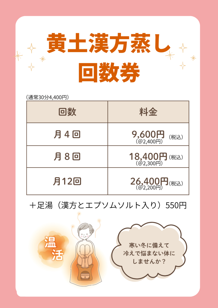 黄土漢方よもぎ蒸し回数券のご案内